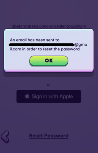 4. A reset password email will be sent to the email address currently logged in to the app.