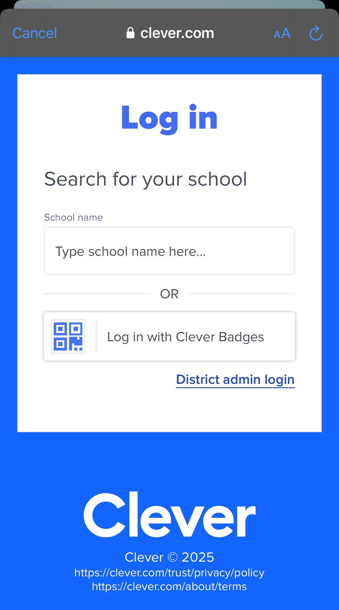 5E. Log in through Clever with your username and password, or by scanning your Clever Badge.