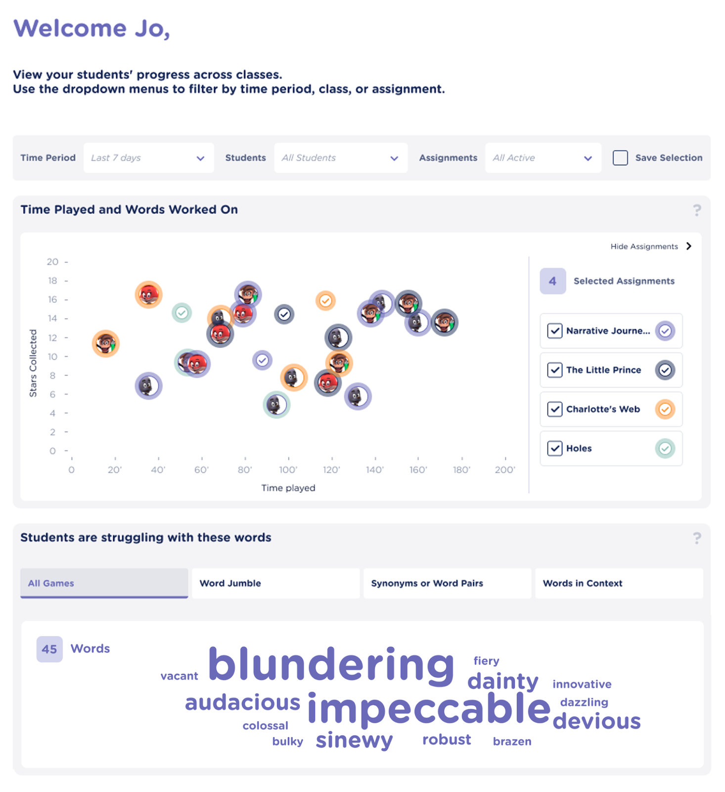 3. Launch Word Tag. You will be brought to your Teacher Dashboard.