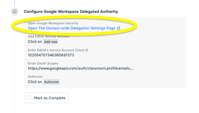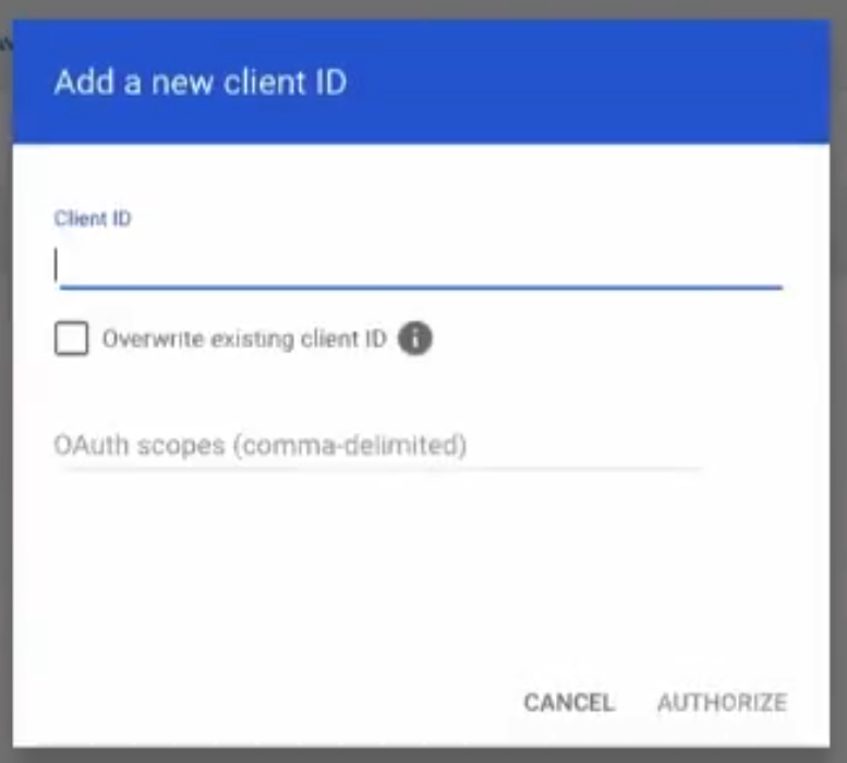 6. Enter Edlink’s Service Accounts Client ID and OAuth scopes. (Click on them on the Edlink onboarding page to copy them to your clipboard.) Leave the “Overwrite” option unchecked. Click AUTHORIZE.