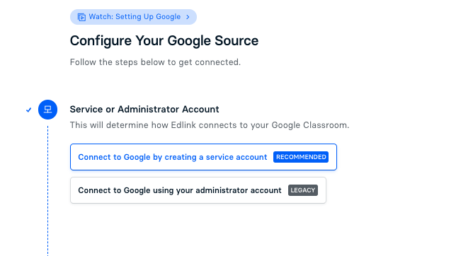 3. Select CONNECT TO GOOGLE BY CREATING A SERVICE ACCOUNT.