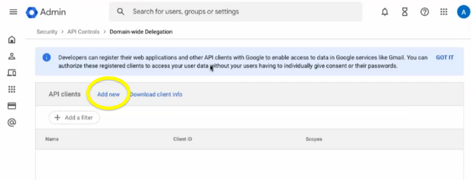 4. Click OPEN THE DOMAIN-WIDE DELEGATION SETTINGS PAGE.